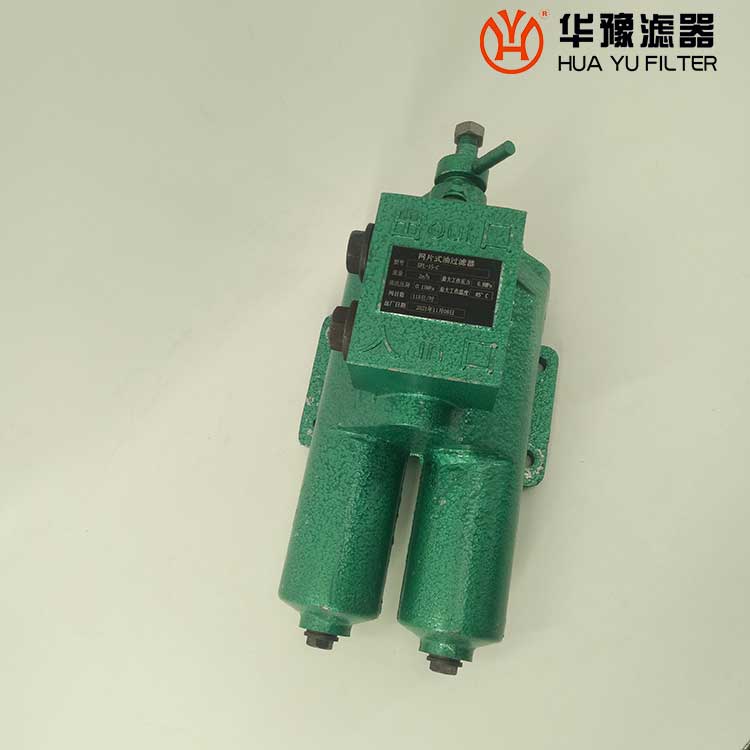每一濾芯組件由濾器蓋、濾芯套筒、濾片及濾片圈等組成,濾器蓋頂部裝有放氣閥,供排出濾器內(nèi)腔的空氣用。 濾片套在濾芯套筒上,是濾器的主要過濾元件,由濾網(wǎng),支承網(wǎng)及波紋隔盤等組成,濾網(wǎng)的網(wǎng)目數(shù)由用戶根據(jù)需要選用。轉(zhuǎn)換閥體是由鑄鋁鋁合金制成的椎體,與閥孔研磨配合,閥體上鑄有上下兩油道孔,上油道孔一端通濾芯上方油腔,一段通濾器出口,下油道孔一段通濾芯腔,一段通濾器進(jìn)口,當(dāng)轉(zhuǎn)換閥迅速從一極限位置轉(zhuǎn)至另一極限位置時(shí),閥體將一濾芯腔的通路關(guān)閉,而將另一濾芯腔的通路打開,此時(shí),壓力油從濾器進(jìn)口流入濾芯腔,經(jīng)濾網(wǎng)過濾后的清潔油經(jīng)上方油腔從出口流出,達(dá)到濾清油液的目的。轉(zhuǎn)換閥體軸端頭上的箭頭指向接通的濾芯腔的一邊。