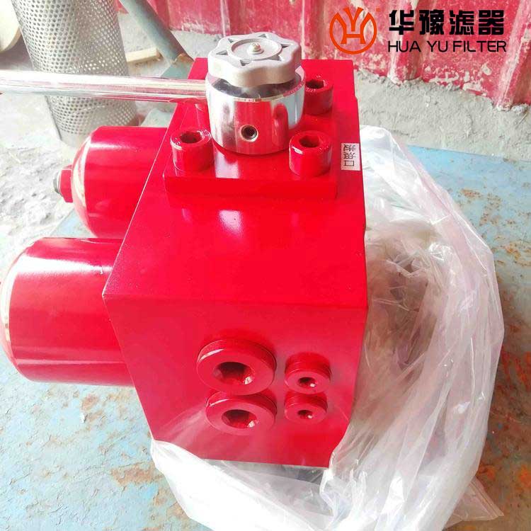 SGF系列雙筒過濾器由換向閥、壓力平衡閥、旁通閥、污染堵塞發訊器及兩只濾筒等組成,可以實現在系統不停機的情況下更換濾芯。該過濾器可安裝在控制元件或執行元件前的高壓管路上,用以保護控制元件及執行機構。特別適用自動控制系統中高精度伺服元件及柱塞元件的保護,可有效控制污染,延長元件使用壽命。工作時一只濾筒通油,另一只濾筒不通油備用。當工作濾筒的濾芯堵塞至壓差發訊器壓力指示值為0.5MPa時,發訊器發訊,此時應及時打開壓力平衡閥、轉動換向閥啟用備用濾筒(換向閥轉動到位后關閉壓力平衡閥)。再只需旋開螺塞放完被堵塞濾筒內的油液,再旋下筒體,就可更換已堵塞的濾芯。如因故未能及時切換換向閥啟用備用濾筒,導致壓差持續上升至旁通閥開啟壓力0.6MPa時,旁通閥會自動開啟,以避免由于壓力繼續上升,濾芯破裂造成再污染。但此時油液未經過濾對系統安全造成***危害,應盡可能避免旁通閥被開啟。