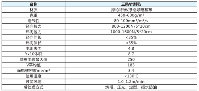 通常工業性粉塵濃度達到一定程度(即爆炸極限)時,如遇靜電放電火花或處界點火因素時,則極易導致爆炸和火災。同時在除塵器運行中的空氣粉塵含有較多水分和油性、吸濕性和易溶解性粉塵,在粉塵表面出現清灰困難,而該針刺氈結合成防水和抗靜電兩種針剌氈的優點與普通濾料相比,不僅具有防油防濕特性,而且具有防靜電的效果。