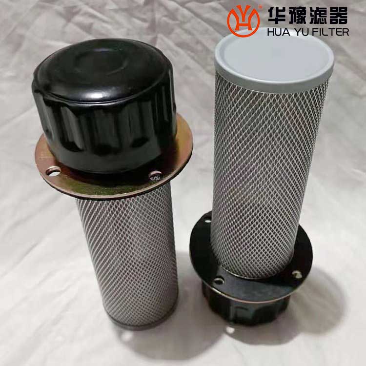 當液壓系統工作時油箱內油面時而上升或下降,上升時由里向外排出空氣,下降時由外向里吸入空氣。為凈化油箱內油液,在油箱蓋板上垂直安裝空氣濾清器,就可以過濾吸入的空氣;同時空氣濾清器又是注油口,注入的新工作油液,須經過濾再進入油箱,從而濾除了油液內的臟物顆粒。